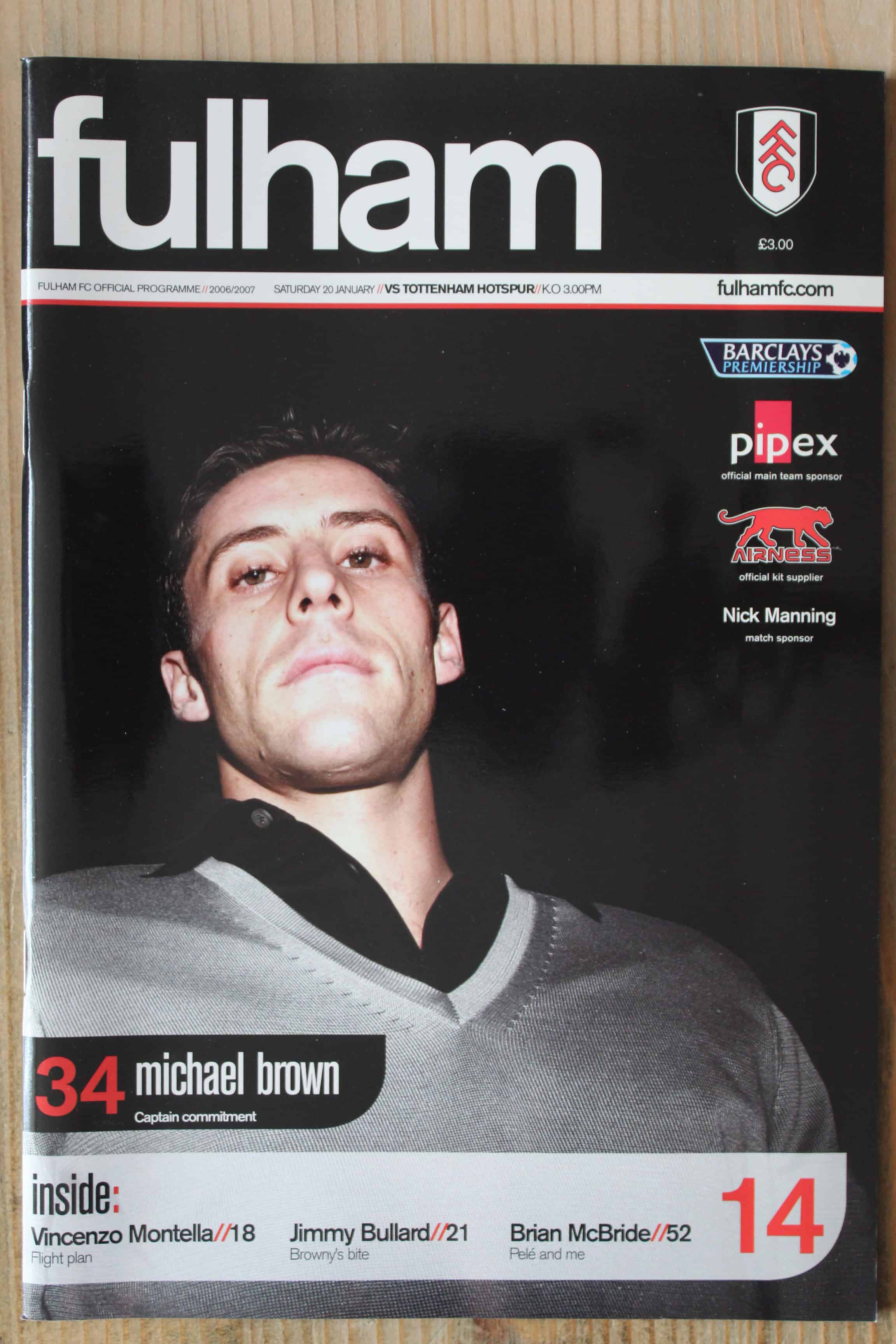 2006/07 Barclays Premiership Football Programme, Official Stadium Edition Football Memorabilia From Fulham Football Club.