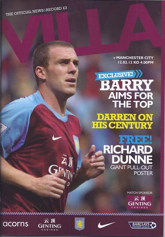 2011/12 Barclays Premiership Football Programme, Official Stadium Edition Football Memorabilia From Manchester City (Man City)Football Club.