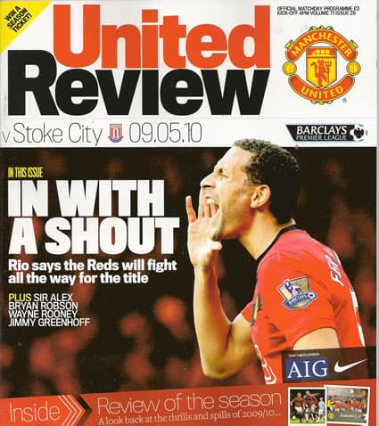 2009/10 Barclays Premiership Football Programme, Official Stadium Edition Football Memorabilia From Manchester United (Man Utd) Football Club.