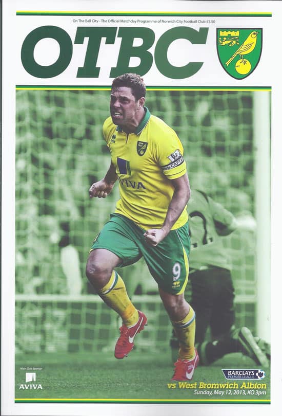 2012/13 Barclays Premiership Football Programme, Official Stadium Edition Football Memorabilia From Norwich City Football Club.